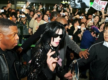 Michael Jackson is apparently not a pariah everywhere. Here he is in Tokyo, being greeted like a huge star by the assembled knuckleheads. It probably shouldn't surprise us that the Japanese would still dig Michael Jackson. I mean, look at the kind of stuff they put on TV over there:You think those two A-bombs we dropped on them scrambled their genes a bit?