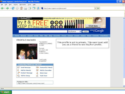 So you tell me - real or made up? Paris Hilton does allegedly have a public MySpace account - and this cap is supposed to show what happens when you view that page with some blocking code disabled: