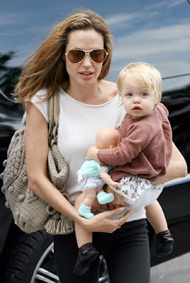 out. Guess she figured Maddox needed a break from having his sanity slowly stripped away. Oh look - Shiloh has a dolly. Angie probably pulled it out of a dumpster and cleaned it up for her. Blobs don't get new toys.