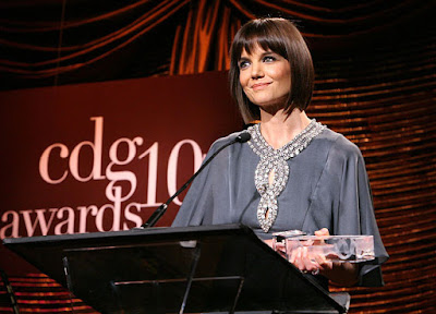 Katie Holmes went to the Costume Designers Guild Awards. Cause she's a big-time fashionista now. A couple years ago she was dressing in low-rider jeans and Wal-Mart camisoles, but not anymore. Tom hooked her up with Posh and now she's...Hideous.