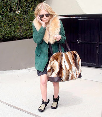 This is why PETA hates the Olsen Twins. Holy shit Mary-Kate! Did you skin an entire game preserve?I think I know what happened to Eight Belles now...Mary-Kate had her sniped so she could skin her for a bathrobe. You are one sick bitch little Olsen girl.