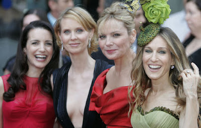 Sex and the City had its big premiere in London today. The four hos of course all showed up. The lesbo decided to show everyone her boobs for some reason. And Sarah Jessica Parker...she saw it next to the road and thought, "I have to wear that on my head."