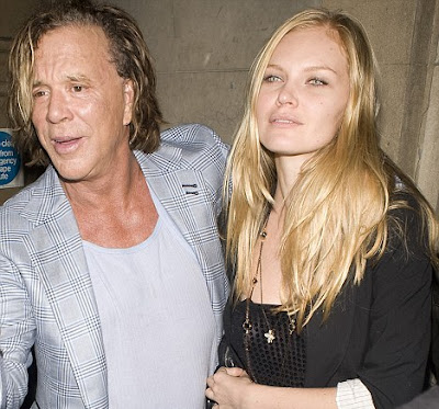 Mickey Rourke is filling the hole left in his heart by the death of his dog Loki...by fucking bimbos.How wasted do you have to be to climb on top of Mickey Rourke? Can you imagine how messed up that peen is by now? All scabby and bent. Grossing myself out.